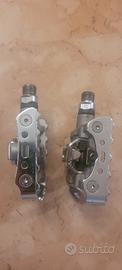 Pedali Shimano spd m324. Tacchette non incluse. Pedali doppio uso, lato flat e lato spd, ottimi per iniziare ad utilizzare le tacchette. Sono in buono stato con qualche leggero segno di usura come da foto, Nessun difetto, utilizzati per una ventina di uscite e sostituiti per passaggio a modello superiore. Nuovi da Decathlon costano 49,99.