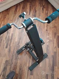 Vendo attrezzo per allenare contemporaneamente gambe e braccia. Ottimo per riabilitazione articolazioni ed un esercizio fisico soft. Monitor LCD che mostra il numero di ripetizioni, il tempo trascorso, le calorie bruciate e la distanza. Attrezzo in metallo e plastica, con angolazione ed altezza regolabili. Utilizzato pochissimo, condizioni pari al nuovo. Formula visto e piaciuto.