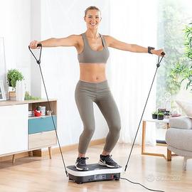 Pedana vibrante fitness con elastici — allenamento completo a casa.