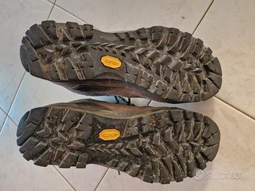 Scarpe numero 38 1/2 usate due volte. Le vendo poichè, purtroppo, ho sbagliato numero. Di seguito le specifiche Calzaturaideale per escursioni in ambiente alpino con zaini a pieno carico e percorsi su sentieri sterrati. Modello studiato per la donna, adatto in qualsiasi stagione e su tutte le tipologie di terreno. Confortevole, impermeabile e protettivo. Made in Asolo (Italy). INTERSUOLA a media densità per massima stabilità, cushioning e durabilità BATTISTRADA VIBRAM®Con disegno esclusivo SCARPA in mescola TRONT per durabilità TOMAIA Realizzata in pelle scamosciata idrorepellente con soffietto, Flex Point e collarino in Cordura® per massimo comfort. Puntale in 3D in TPU di protezione ALLACCIATURA Sistema Speed Lacing con minuteria bi-componente in acciaio leggero e plastica. L’allacciatura è differenziata in due parti. La parte inferiore con passalacci in acciaio leggero e plastica che permettono un veloce scorrimento del laccio e regolano la tensione e i volumi di calzata in un unico movimento. La parte superiore ha un blocca laccio che divide le zone di tensione dell’allacciatura e ganci per un avvolgimento omogeneo e progressivo di piede e caviglia, per ottenere una calzata confortevole e senza costrizioni. FODERA Membrana GORE-TEX Performance Comfort per la massima impermeabilità. SUOLA Biometric Trek con intersuola in PU, per massimo comfort e durabilità. Battistrada in gomma Vibram®.