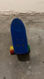 Vendo penny board in plastica rigida, colore blu con ruote multicolore.