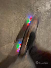 Piccolo skateboard con teschi messicani gripp, nero con ruote che si illuminano al movimento. Tenuto molto bene usato solo una settimana in vacanza, da oliare giusto un goccio i cuscinetti delle ruote e come nuovo.