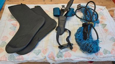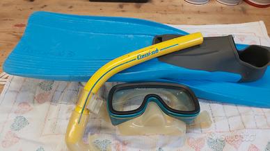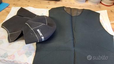 atrezzatura completa da SUB comprende : muta con corpetto e cappuccio , pinne, maschera con boccaglio , cintura piombi ,coltello ,rete per il pesce, boa a vista con bandierina , borsa a doppio, fondo , + seggiolino .tutto usato ben conservato, non spedisco consegno a mano in zona limitrofe venezia o terra ferma.