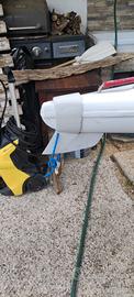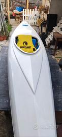 vendo canoa in resina buone condizioni, monoposto, lunghezza MT 3,95 per larghezza 61 cm per 20 kg circa di peso, gavone capiente con tappo, pinna removibile. canoa che taglia l'acqua benissimo quindi fila senza fatica, non ho pagaia