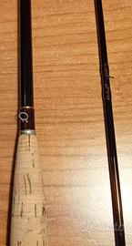Canna RON KUSSE MAKER 8'3" # 5/6 in 2 pezzi con fodero non originale, azione media molto piacevole, made in U.S.A. realizzata dallo stesso Ron Kusse ex vice presidente e rod maker della Leonard. La canna è in condizioni ottime.