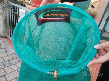 secchi da pastura, nasse varie misure, vaschette piccole e grandi, pali telescopici in alluminio, vassoio porta esche, ecc.