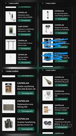 pacchetti con avvisatori e scimmiette per tendere il figlio e supporti posteriori per reggere le canne