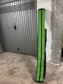Dentrk al fodero ci entrano 2/3 canne con il mulinello , il fodero è bello rigudo e comodo , le ferniete stanno messe bene .