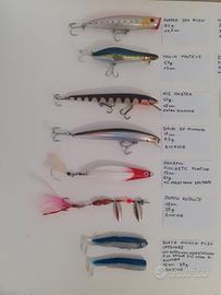 Vendo a prezzo d'occasione il set composto da 14 magnifiche esche per praticare la pesca spinning pesante sia da scogliera , in spiagge profonde o dalla barca. La tipologia delle esche è descritta nelle foto, sono praticamente nuove. Vendo per inutilizzo in offerta l'intero set al prezzo di soli 50 euro. (No vendite singole, contatti tramite Subito.)