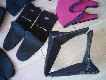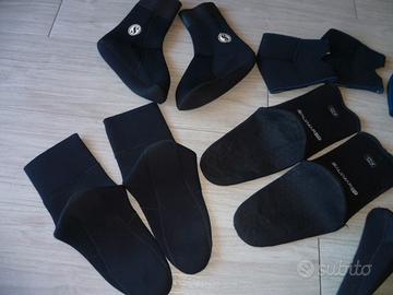 Vendo per esubero anche separatamente i seguenti calzari e ginocchiere per pesca subacquea: Calzari Rofos 3 mm 43-44, interni in plush, con bordo stagno e soletta rinforzata ottimo stato 15 euro Calzari Scubapro 3mm taglia 2’ (38-39) bifoderati con collare esterno in neoprene liscio come nuovi 10 euro Calzari Salvimar Drop 3 mm XL buono stato 10 euro Calzari Sea Sub 3 mm 42-43, interni in caldo plush, con bordo stagno, buono stato 10 euro Ginocchiere nere in neoprene 7 mm VENDUTE Ginocchiere blu in neoprene 5 mm VENDUTE Ginocchiere Fucsia in neoprene 5 mm buono stato 5 euro Tel. 3498108197 Per il pagamento bonifico bancario in caso di spedizione oppure ritiro diretto Se l’inserzione è visibile vuol dire che è ancora disponibile SOLO INTERESSATI Grazie