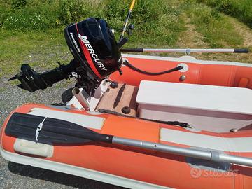 vendo tender neoprene e chiglia rigida. restaurato e pronto per la pesca. motore Mercury 4hp 4 tempi, serbatoio esterno, ruote alaggio, remi, porta canne inox, gavone, ancora catena cima. lungo 2 metri circa. gioiellino . va come uno grande.