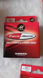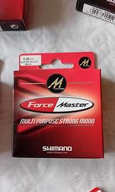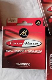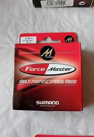 10 confezioni di filo Shimano FORCE MASTER da 150 mt. cadauna, nei diametri: 0,14 - 0,16 - 0,20 - 0,25 - 0,30 suddivise in due bobine per diametro, NUOVE.