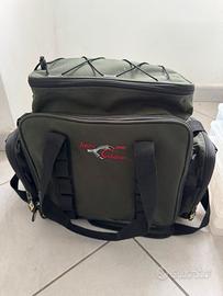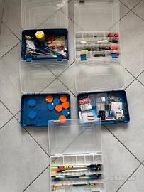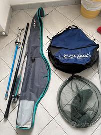 Vendo attrezzatura completa per la pesca alla trota in laghetto, il tutto conprende due canne shimano speedmaster numero 5, grammatura 8-12g comprese di custodia originale e porta canne della dip. Due mulinelli, uno aernos 3000sfa ed uno exege 2500fb tutti e due con bobine originali di ricambio mai usate, comprensivi entrambi di filo. Guadino con asta e rete da 3,20m comprensivo di sacca porta rete della colmic e 1 porta canna da terra da inserire nel terreno. Borsa porta attrezzatura verde con cinque scatole piene tra galleggianti di vario tipo ed altra minuteria mista come si vede da foto, in piu altre sei scatole vuote originali della borsa. Il tutto usato ma tenuto molto bene come si puo vedere dalle foto. Regalo solo su acquisto del set pesca completo anche completo in neoprene della colmic taglia L e guanti tubertini appositi alle pesca in neoprene taglia M. Vendo tutto solo in blocco, preferisco consegna a mano. Per le altre foto chiedete nei messaggi.
