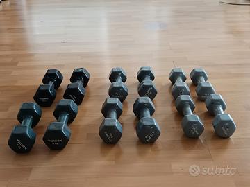 Vendo 2 coppie di pesetti rispettivamente della Toorx da 4, 5, 6 kg, utilizzati poco, buono stato. Vendo in blocco, non spedisco