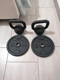 Kit manubri Corenght 20 kg e 2 kettlebell Domyos da 6 kg cadauno in ghisa con base in gomma, usati pochissimo. Possibilità di vendita separata (45-25)