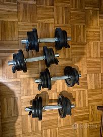 vendo 4 manubri con 2 pesi da 2 kg l'uno più 16 kg da 1 kg l'uno praticamente come nuovi. ritiro a domicilio.