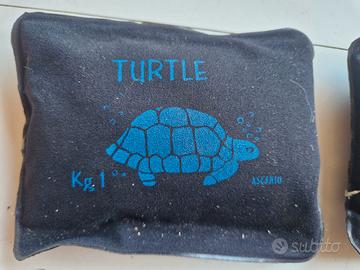 8 Pesi da sub, usati pochissimo, 4 da 2,5 kg e 4 da 1 kg.
