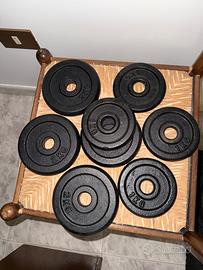 Vendo vari pezzi di pesi in ghisa per bilanciere e bilanciere , di cui bilanciere lungo circa 180 in acciaio inox con fermi rotanti , bilanciere curvo lungo circa 120 in acciaio inox , pesi in ghisa con foro largo 3 cm circa, di cui 4 da 1 kg, 4 da 2 kg , 8 da 5 kg e 2 da 10 kg