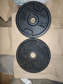 Vendo pesi palestra: - 60 kg artigianali in ferro da trattare con prodotto antiruggine (2*20 + 2*10) + 4 kg in ghisa della Domyos. Foro da 25 mm