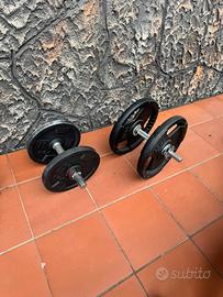 Piccolla palestra von panca inclinabile, bilancere, 2 manubri modulabili, 1 manubrio con dischi forati per fare dorsali, dischi torali 60kg