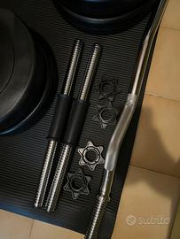Pesi palestra regolabili: 6x 10kg 6x 5kg 4x 2,5kg 6x 1,25kg Vendo insieme la coppia di manubri e bilanciere ondulato (ez) Leggermente trattabili, non vendo separatamente.