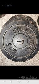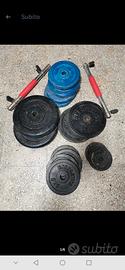 Pesi per bilanciere foro 28 mm 2x10 kg ghisa 2x5 kg ghisa 4x2.5 kg gommati 4x2 kg ghisa 2x1 kg ghisa Tot. 50 kg Vendita separata possibile 2.5 €/kg Tot. 50 kg Due manubri come da foto Spedizione a carico acquirente da definire in base al luogo di spedizione