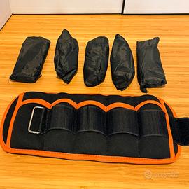 Marca Sportneer, mai usati, con cartellino. Dalla descrizione su sito : PESO REGOLABILE: 5 sacchetti individuali, ogni sacchetto pesa 0,23 kg. Il peso totale per ogni fascia può essere regolato da 0,23 a 1,6 kg (da 0,46 a 3,2 kg in coppia) per aumentare la resistenza. Una scelta perfetta per principianti che vogliono aggiungere peso gradualmente. PERFETTO PER IL FITNESS: caricate più o meno peso a seconda dell'intensità desiderata. Può essere utilizzato per l'allenamento della forza della parte inferiore del corpo, camminata, corsa, allenamento incrociato o molti altri esercizi di fitness. UNA TAGLIA PER TUTTI: Con strap in velcro regolabili per dare una maggiore comodità a caviglie e polsi di tutte le dimensioni. QUALITÀ E CONFORT: Fatta di neoprene, con cuciture rinforzate ed un rivestimento esterno durevole e morbido per un confort maggiore.