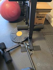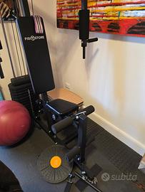 Stazione multifunzione allenamento Home Gym Sistema con 3 carrucole che permettono i seguenti esercizi: Chest Fly Back Row Leg Extension Bicep curl Lat Pull Down Lat Pull Over High Cable Crunch Standing Hamstring Curl Standing Triceps Extension Shoulder Raise Upright Row Side Leg Kick Lat machine Ritiro di persona. Roma Nord. No spedizione. Dimensioni: 142x118x206 cm - Peso del prodotto: 85 kg - Pacchetto pesi: 11 da 5,5 kg e 1 da 4,5 kg per un totale di 65 kg - Peso massimo utilizzatore: 125 kg