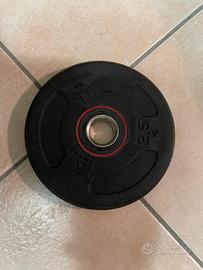 Vendo bilanciere curvo + n. 4 pesi in gomma domyos da 2,5 kg +kit manubri con pesi 20kg