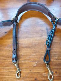 Pettorale elastico ideale per il completo, realizzato in cuoio con inserti in agnello naturale.Fibbie/finiture in ottone e acciaio. Dotato di attacco sulla campanella e sui riscontri, con sistema autocentrante per un’ottima stabilità. Colore marrone, taglia comb. Nuovo mai usato! Scrivere se veramente interessati.