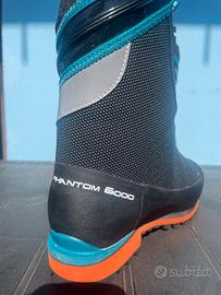 Vendo per inutilizzo praticamente NUOVI, scarponi da alpinismo di alta quota Scarpa Phantom 6000 numero 39. Dotati di scarpetta estraibile interna, sono comodi da indossare e molto caldi. Completamente ramponabili, sono utilizzabili anche per cascate di ghiaccio.