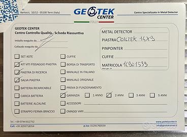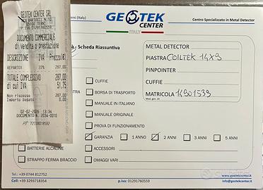 Vendo come nuova, per inutilizzo, Piastra di ricerca CoilteK 14″ x 9″, ha una grande capacità di precisione e di rilevazione in profondità, localizzazione e sensibilità. Aumento delle capacità del metal detector del 30% in più! Piastra robusta dal peso contenuto, è ideale per la ricerca in acqua e su terra, in campo aperto. Completamente immergibile Compatibile per metal detector Minelab serie EQUINOX Equinox 600 Equinox700 Equinox800 Equinox900 X-Terra PRO X-Terra Elite * Dimensioni: 37 cm x 24,5 cm / 14″ x 9″ * Peso: 880 grammi * Garanzia: 2 anni Dotazione Standard -Piastra Coiltek 14”x9″ -Copripiastra -Viti di fissaggio