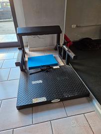 Vendo robusta piattaforma multiuso per Belt Squat e Box Squat del marchio professionale Lightweight Equipment. Un attrezzo eccellente e compatto, ideale per home gym, garage gym o per chi desidera allenare le gambe con carichi elevati scaricando completamente la colonna vertebrale. 💪 Caratteristiche principali: Struttura Heavy-Duty: Telaio in acciaio massiccio e ampia pedana in alluminio mandorlato antiscivolo per la massima stabilità durante le alzate. Regolabile e Versatile: I due bracci/supporti laterali sono regolabili in altezza grazie ai fori sui montanti, perfetti per appoggiare i carichi o come sicurezza. Ideale per varianti di squat, stacchi parziali o rematori. Panca integrata: Dotata di cuscino posteriore solido, perfetto per eseguire Box Squat o da usare come riferimento per la profondità dell'accosciata. Accessori INCLUSI: Cedo insieme alla struttura anche la cintura per il sollevamento (visibile in foto) e il pad blu aggiuntivo per rialzare la seduta o per il comfort delle ginocchia. 🔧 Condizioni: L'attrezzo è strutturalmente perfetto e indistruttibile. Presenta dei fisiologici segni di usura estetica sulla vernice (in particolare sui bracci di appoggio e sulla pedana, come visibile in foto), dovuti al normale utilizzo con i pesi. Vera occasione per avere un macchinario professionale e salvaspazio senza spendere cifre esorbitanti per le macchine a leveraggio.