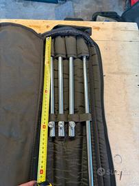 Vendo per inutilizzo borsa nash con tre picchetti Matrix 30 cm e tre 40 cm, tre poggia canne nash,