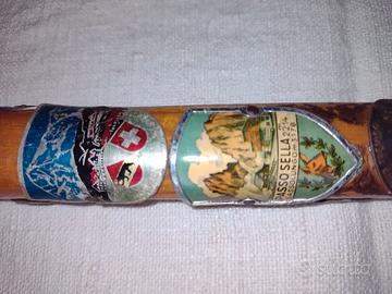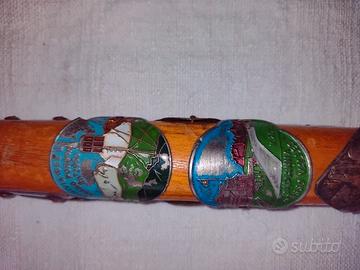 Alpinismo vintage anni 60/70. Altezza cm 84 con placche scudetti originali dei rifugi alpini.