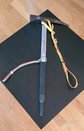 Bellissima piccozza della Grivel anni 80. La dragonne gialla è attuale, la sua originale è quella tipica con anello metallico e cinturino tricolore che si vede nelle foto.