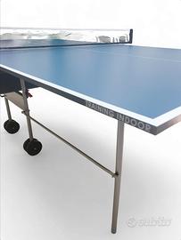 Ping pong garlando training indoor nuovo Disponibile pronta consegna Colore blu e verde Immagini illustrative Merce ancora nell imballo di fabbrica Visibile nel nostro store Prezzo in offerta a 299 IVA inclusa . Ritiro in sede possibilità di trasporto e montaggio (costo aggiuntivo) CARATTERISTICHE TECNICHE: -Campo Giococm. 274 x 152,5 x 76 -Modello per interno, pieghevole, è indicato per l'uso familiare e il gioco amatoriale -Training Indoor consente di sollevare uno dei due piani per giocare da soli -Rete e tendirete permanenti in dotazione, non è necessario smontarli per piegare il tavolo -Telaio e gambe: struttura tubolare metallica diametro mm. 25, con verniciatura a polvere. In dotazione porta racchette e palline -Quattro ruote doppie (diametro mm. 125), di cui due rotanti a 360°, facilitano lo spostamento quando il tavolo è piegato. Per ulteriori informazioni o modelli di ping pong non esitate a contattarci