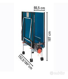 Ping pong garlando training outdoor nuovo Disponibile pronta consegna Colore blu Ancora nell imballo di fabbrica visita il nostro shop WWW.LUCARTECBILIARDI.IT Prezzo in offerta per questo mese a 460 iva inclusa in omaggio 2racchette e 6 palline Ritiro in sede Possibilità di trasporto e montaggio o spedizione in tutta Italia Costo aggiuntivo CARATTERISTICHE TECNICHE -Campo Giococm. 274 x 152,5 x 76 -Modello per esterno pieghevole, è indicato per l'uso familiare e il gioco amatoriale -Struttura del piano di gioco in resina stratificata (spessore mm. 4) bordo con tubo metallico dello spessore di mm.36, con linee bianche indelebili e finitura antiriflesso. -Training outdoor consente di sollevare uno dei due piani per giocare da soli -Rete e tendirete permanenti in dotazione, non è necessario smontarli per piegare il tavolo -Telaio e gambe: struttura tubolare metallica diametro mm. 25, con verniciatura a polvere. In dotazione porta racchette e palline -Quattro ruote doppie (diametro mm. 125), di cui due rotanti a 360°, facilitano lo spostamento quando il tavolo è piegato. Per ulteriori informazioni o modelli di ping pong ,calcio balilla ,carambola,biliardo, calciobalilla, biliardino non esitate a contattarci