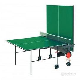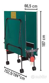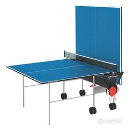 Tavolo Da Ping Pong Training Indoor Con Ruote Per Interno....originale Garlando Nuovo, Consegna a partire da 30 Euro in zona Catania,Siracusa, Enna,Ragusa,Messina,ecc Prezzo nn trattabile.. no perditempo grazie... Per info: 3474084766 / 095855724 DESCRIZIONE Modello per interno, verde o blu, per l'uso familiare e amatoriale Modello per interno, pieghevole, con piano gioco verde o blu, è indicato per l'uso familiare e il gioco amatoriale. Il piano gioco, con misure regolamentari da torneo, è realizzato in materiali adatti a ottenere una buona qualità nel rimbalzo della pallina. Il tavolo è dotato di dispositivi che facilitano notevolmente le operazioni di chiusura e gli spostamenti, quali la chiusura automatica, rete e tendirete permanenti, ruote doppie. Training Indoor consente di sollevare uno dei due piani per giocare da soli ed è anche adatto all'uso da parte di persone con ridotta mobilità. Conforme alle Norme europee armonizzate sulla sicurezza EN 14468-1/2. SCHEDA TECNICA Modello per interno, pieghevole con chiusura automatica, con misure regolamentari da torneo, è l'ideale per l'uso familiare e il gioco amatoriale. Disponibile con piano gioco verde e telaio nero, oppure piano gioco blu e telaio silver. Struttura del piano di gioco in agglomerato di legno con rivestimento melaminico (spessore mm. 16), con linee bianche indelebili e finitura antiriflesso. Rete e tendirete permanenti in dotazione, non è necessario smontarli per piegare il tavolo. Telaio e gambe: struttura tubolare metallica diametro mm. 25, con verniciatura a polvere. In dotazione porta racchette e palline. Quattro ruote doppie (diametro mm. 125), di cui due rotanti a 360°, facilitano lo spostamento quando il tavolo è piegato. Racchette e palline fornite su richiesta DIMENSIONI Modello TRAINING INDOOR BLU Campo Gioco cm. 274 x 152,5 x 76 Ingombro quando piegato: cm. 152,51 / 1842 (lunghezza) x 66,5 (base) x 187 (altezza) Telaio Ø mm. 25 Peso Kg. 69 /calciobalilla, biliardo ,carambola