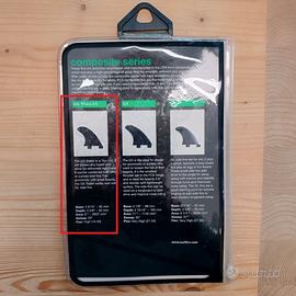 Vendo pinna singola FCS GS Trailer originale, appartenente alla Composite Series. L'oggetto è nuovo e viene venduto nella sua confezione originale (custodia a bustina). Questa pinna è definita una "fun fin": è progettata per essere utilizzata come stabilizzatore centrale (trailer) per rendere la tavola più manovrabile. Modello: GS Trailer Sistema di attacco: FCS I (Dual Tab - fissaggio con due viti) Base: 3 9/16" (~ 90 mm) Altezza/Profondità (Depth): 3 5/8" (~ 92 mm) Area: 9"² (~ 5837 mm²) Sweep (Inclinazione): 29° Flex: High (16.50) - Molto flessibile per una risposta fluida in acqua.