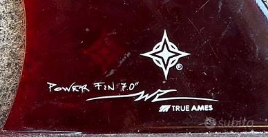 Vendo pinna centrale True Ames, modello Wayne Rich Power Fin da 7.0" (pollici), colorazione Red Wine/Acid Splatter. Si tratta di una pinna tecnica di altissimo livello, progettata dallo storico shaper californiano Wayne Rich. La "Power Fin" è celebre per il suo profilo bilanciato: offre una base solida per dare massima spinta (drive) e una punta flessibile quanto basta per garantire manovrabilità e fluidità nei turn. Utilizzo ideale: • Perfetta per Mid-length o Single Fin dai 6'8" ai 7'6". • Ideale come pinna centrale su Longboard in configurazione 2+1 (con alette laterali). Condizioni: L'oggetto è usato ma in buone condizioni strutturali. Presenta i normali segni superficiali e graffi sul foil tipici delle pinne in vetroresina, che non ne compromettono minimamente le prestazioni idrodinamiche. Bordi integri senza riparazioni. Dettagli Tecnici • Altezza: 7.0" • Materiale: Solid Fiberglass (Vetroresina piena) • Attacco: Standard US Box • Brand: True Ames (Made in USA)