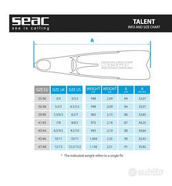 Pinne, SEAC Talent, misura 39/40 Nuove con Etichette, in confezione originale. Mai usate, aprile 2026.