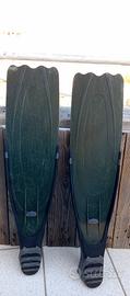 Vendo pinne con pala intercambiabile,segni di usura sulle pale (in polimero) dovuti alla pesca nel bassofondo per la quale sono perfette, considerando che si và a strofinare/sbattere sulle rocce.Molto flessibili anche con l' acqua fredda dell' inverno, insomma un' ottimo prodotto sia per la pesca che per il semplice diving.