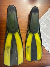 2 paia di pinne blu (taglia 40/41) e gialle (taglia