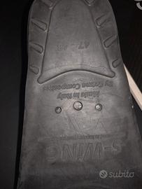 pinne cetma edge durezza M con scarpetta swing 47-48 io ho un 46 qualche piccolo graffio ma tenute benissimo sempre lavate acqua dolce ogni uscita scarpette incollate ma se si vogliono cambiare si tolgono vendo per cambio progetto