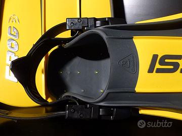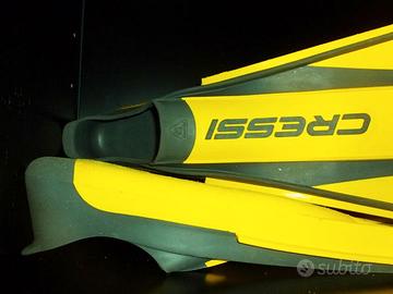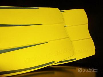 Vendo pinne Cressi Free Frog a scarpetta chiusa usate per inutilizzo. La free frog gode delle caratteristiche esclusive delle pinne subacquee Cressi mantenendo lo spirito della leggendaria frog. La pala nasce direttamente dalla parte superiore della scarpetta. Pinne da Immersione /Snorkeling/Gomma Eva, unisex adulto misura 43/44, colore giallo. Lunghezza cm 65.