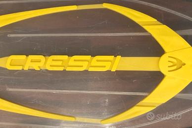 Utilizza il sistema costruttivo Cressi (brevettato) di stampaggio in 3 materiali, per prestazioni elevate e facilità di pinneggiata.