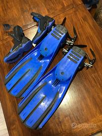 Pinne Mares Plana avantix-3 colore blu-nero. Con agganci regolabili, lunghezza 62 cm. Calzari Mares seaboot taglia M, colore blu-nero