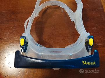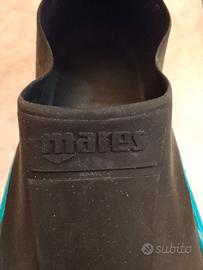 Pinne Mares verdi da snorkeling. Misura 39-40. Con inserti tendiscarpetta per prevenire deformazioni durante lo stoccaggio o il trasporto. A parte qualche graffio, la calzata è ancora molto comoda. Maschera da snorkeling Subea regolabile in silicone con vetro temperato. Usata poco per errata misura.