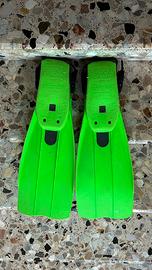 "frog" colore verde fluo. La taglia è M-L, i materiali sono Elastomero termoplastico (TPE) e copolimero. Sono lunghe 63cm e Il loro utilizzo trova impiego nell'attività subacquea (utilizzabili quindi solo con indosso i calzari). Se hai bisogno di altre informazioni e foto scrivimi!